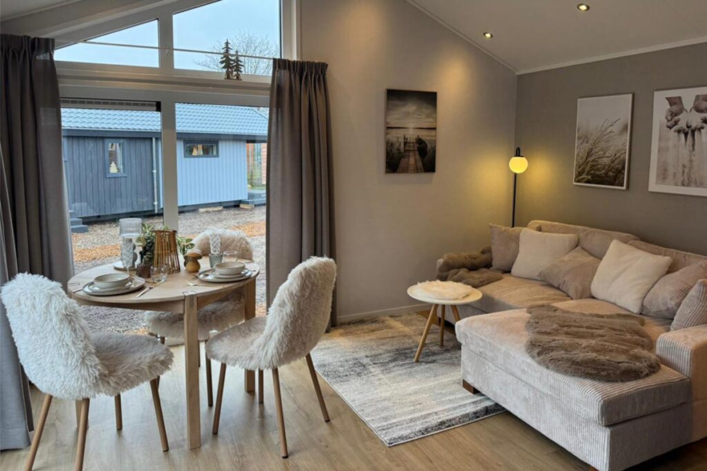 Unsere Chalets basieren auf der Basis eines ursprünglichen Mobilheimes. Der Unterschied zu den ursprünglichen Mobilheimen ist, dass das Haus aus einem Holzständerwerk besteht und entsprechend winterfest gedämmt ist, so dass unsere Kunden sich auch im Winter wohlfühlen können und wir eine Genehmigung für dauerhaftes Wohnen einreichen können.